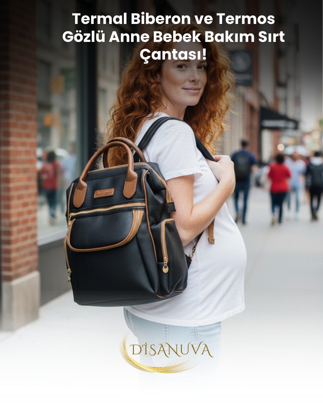 Anne Bebek Bakım Sırt-Omuz Çantası Suni Deri Su Geçirmez Termal Biberon Bölmeli Puset Askı Hediyeli